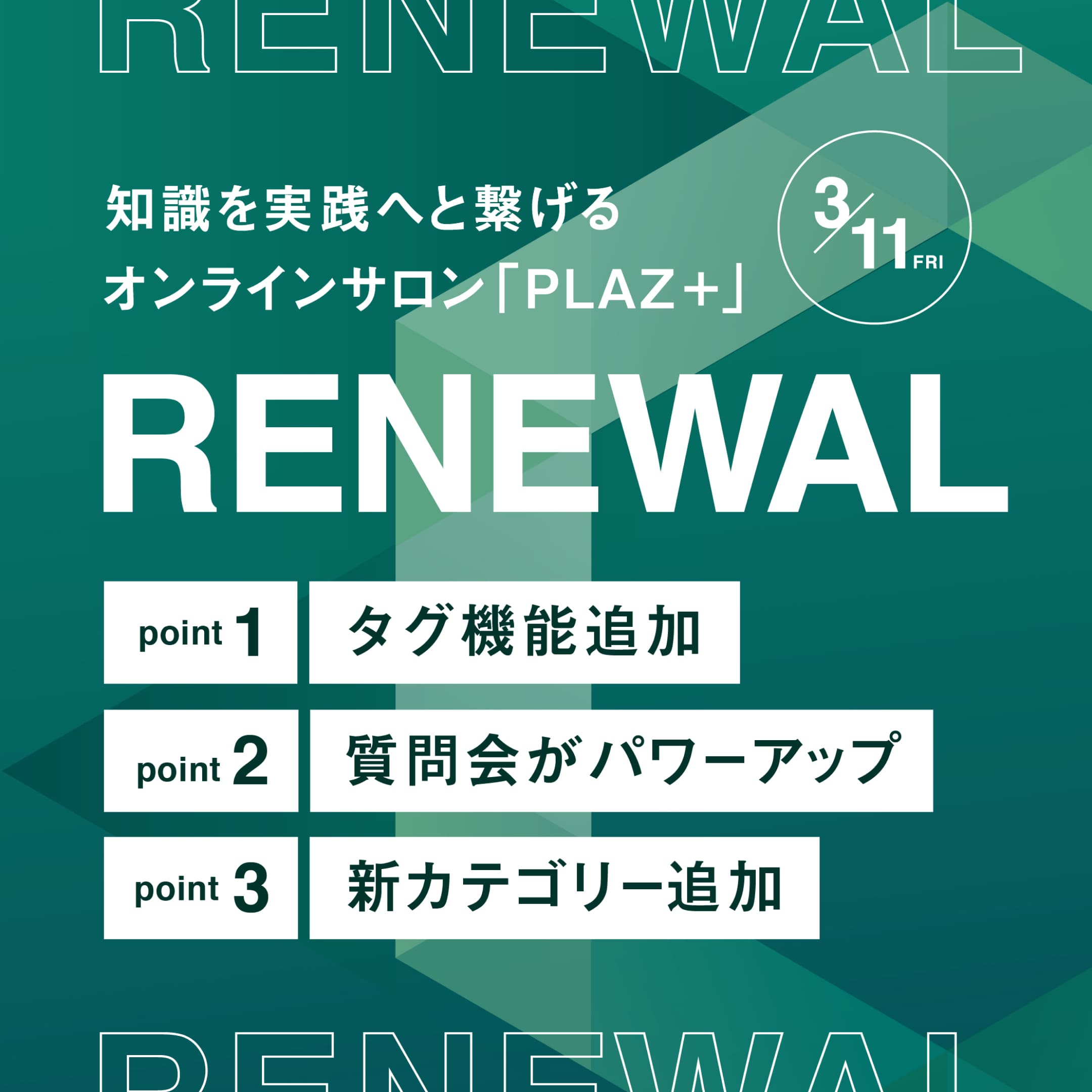 知識を実践へとつなげるオンラインサロン「PLAZ+」は3/11にサービスを拡充いたします。