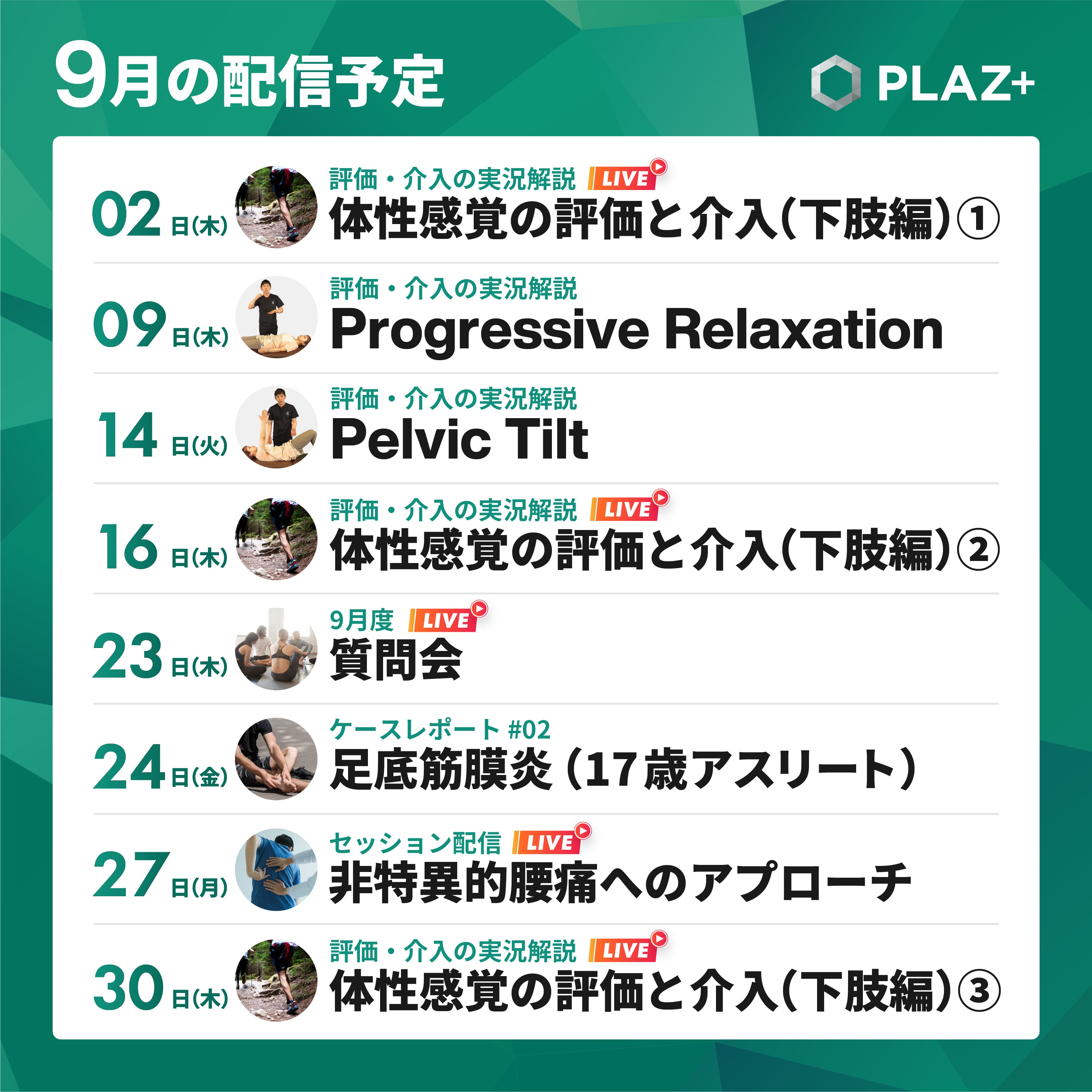 「PLAZ+」9月の配信スケジュールが決定したのでお知らせいたします
