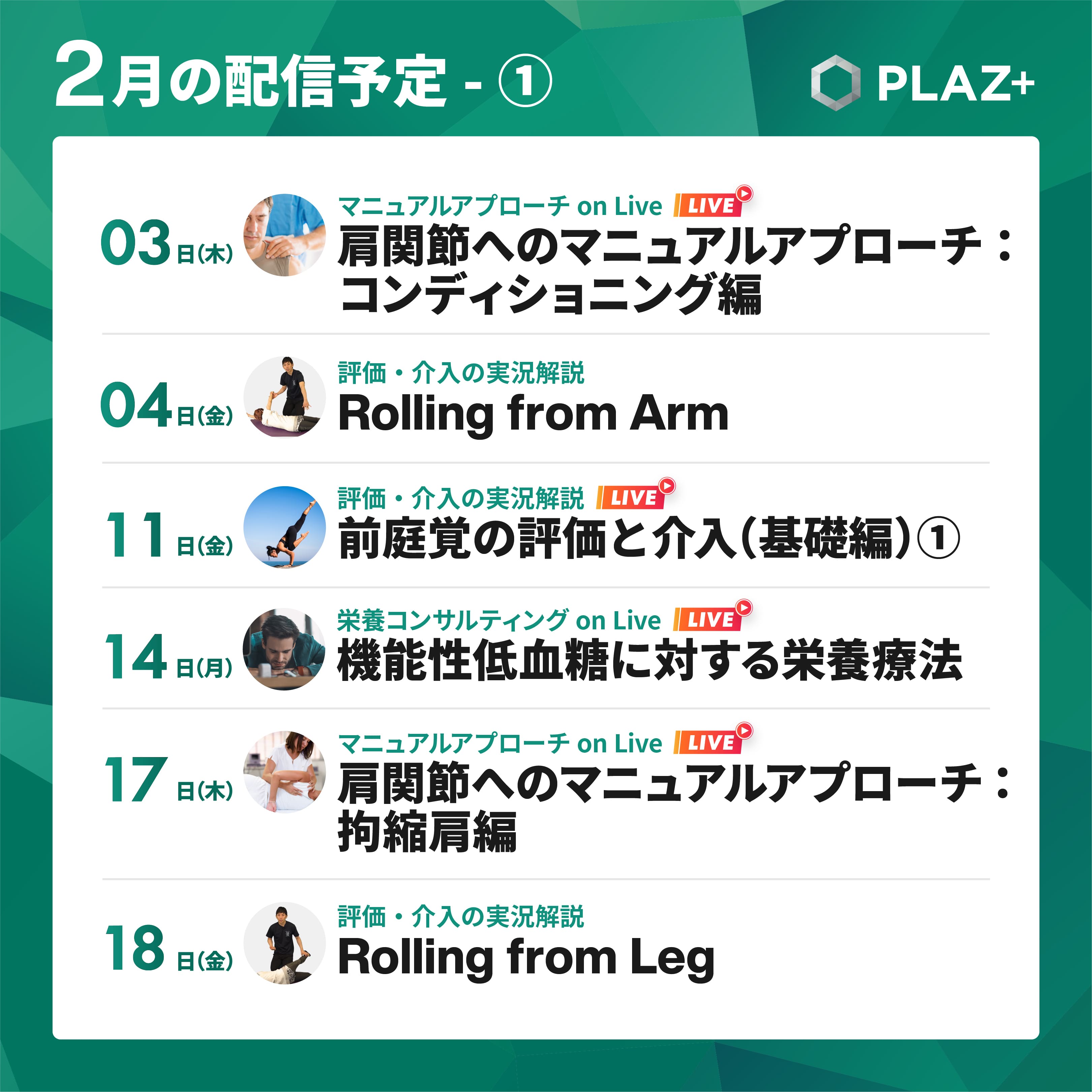 「PLAZ+」2月の配信スケジュールが決定したのでお知らせいたします (詳細は画像をご覧ください)。